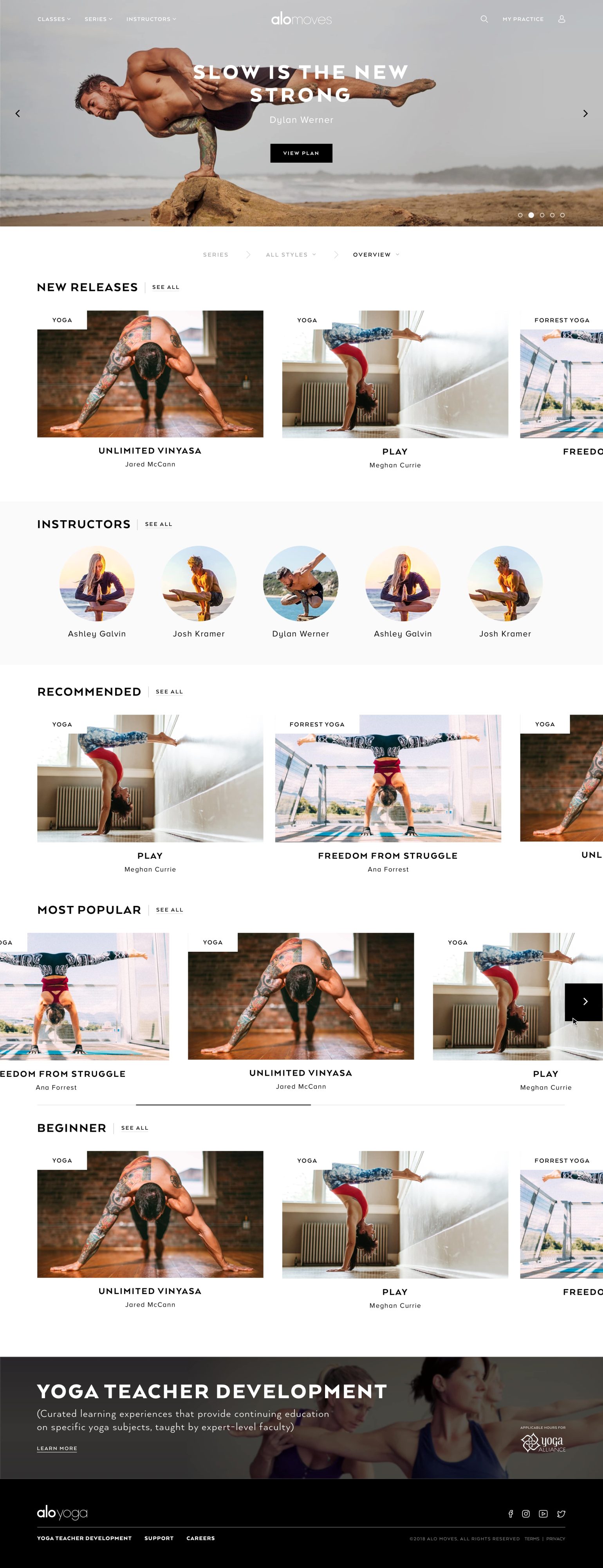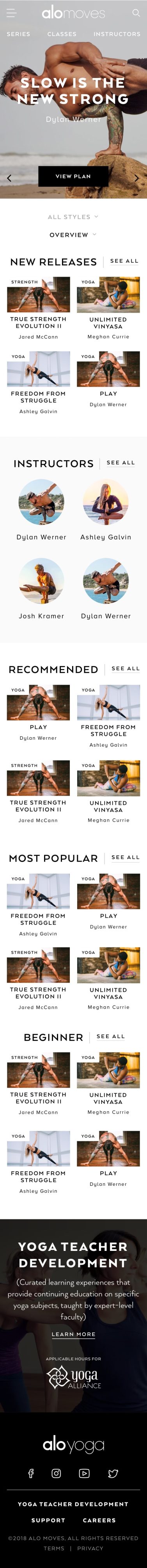 The yoga video arm of athleisure attire company, Alo Yoga, the Alo Moves platform offers a library of on-demand videos and social community. This was far and away the most comprehensive project I’ve ever been involved with.